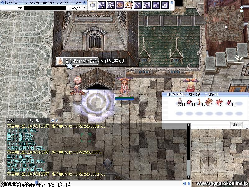 ジュノー研究所前にて魚介類アイテム露店を開いているわけですが、今まで