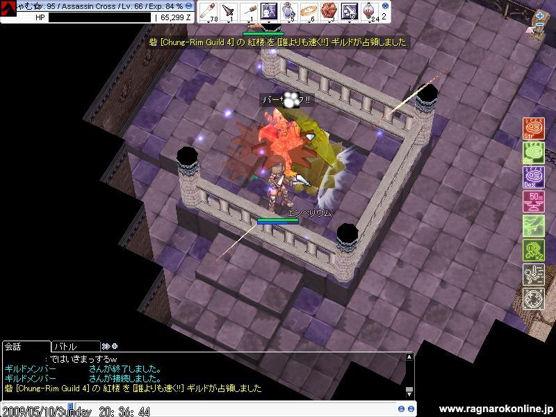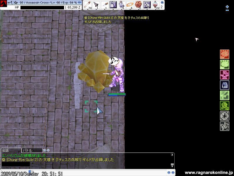 21:59回って内部突入し、攻撃を受けながら速度POTでエンペ付近に行き
