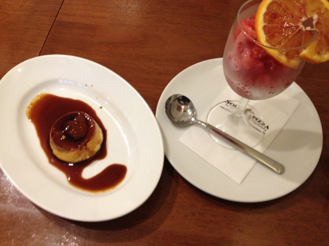 向かって左がプリンパンナコッタ、右がブラッドオレンジのシャーベット。 シャーベットを一口味見させてもらったの。